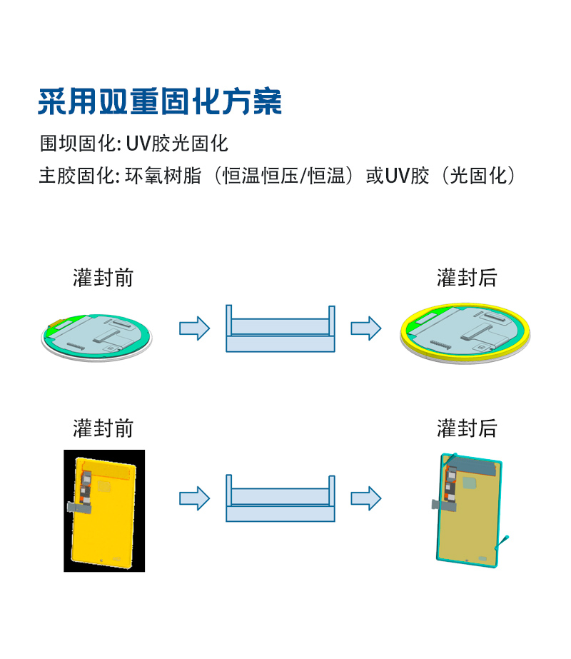 專為手機、穿戴設備、平板電腦及筆記本等消費電子領域打造,以真空環境灌膠成型技術,實現顯示模組的完美封裝...